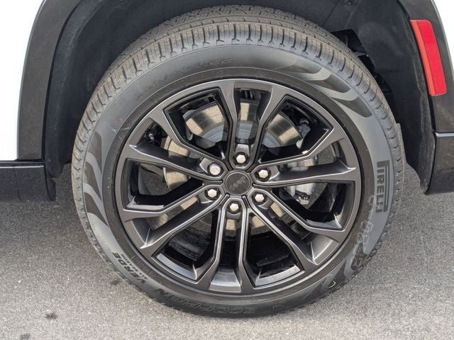 Well equipped with: ABS brakes, Active Cruise Control, Alloy wheels, Compass, Electronic Stability Control, Front Bucket Seats, Front dual zone A/C, Heated door mirrors, Heated Exterior Mirrors, Heated front seats, Heated rear seats, Illuminated entry, Low tire pressure warning, Navigation System, Power Liftgate, Power moonroof, Power passenger seat, Rear dual zone A/C, Remote keyless entry, Split folding rear seat, Traction control, Ventilated front seats, 118 MPH Maximum Speed Calibration, 19 Speakers, 3.55 Rear Axle Ratio, 3rd row seats: bench, 4-Wheel Disc Brakes, Adaptive suspension, Air Conditioning, AM/FM radio: SiriusXM with 360L, Anti-whiplash front head restraints, Apple CarPlay/Android Auto, Audio memory, Auto Adjust in Reverse Exterior Mirrors, Auto High-beam Headlights, Auto-dimming door mirrors, Auto-Dimming Exterior Driver Mirror, Auto-dimming Rear-View mirror, Auto-leveling suspension, Automatic temperature control, Brake assist, Bumpers: body-color, Delay-off headlights, Driver door bin, Driver vanity mirror, Driver's Seat Mounted Armrest, Dual front impact airbags, Dual front side impact airbags, Emergency communication system: Jeep Connect, Exterior Mirrors Approach Lamps, Exterior Mirrors with Memory, Exterior Mirrors with Supplemental Signals, Exterior Parking Camera Rear, Four wheel independent suspension, Front anti-roll bar, Front Center Armrest w/Storage, Front fog lights, Front reading lights, Fully automatic headlights, Garage door transmitter, Heads-Up Display, Heated steering wheel, Knee airbag, Leather steering wheel, Leather Trimmed Bucket Seats, Memory seat, Normal Duty Suspension, Occupant sensing airbag, Outside temperature display, Overhead airbag, Overhead console, Panic alarm, Passenger door bin, Passenger seat mounted armrest, Passenger vanity mirror, Power adjustable front head restraints, Power door mirrors, Power driver seat, Power steering, Power windows, Radio data system, Radio: Uconnect 5 Nav with 12 Display, Rain sensing wipers, Rear air conditioning, Rear anti-roll bar, Rear reading lights, Rear seat center armrest, Rear window defroster, Rear window wiper, Reclining 3rd row seat, Security system, Speed control, Speed-sensing steering, Speed-Sensitive Wipers, Steering wheel memory, Steering wheel mounted audio controls, Tachometer, Telescoping steering wheel, Tilt steering wheel, Trip computer, Turn signal indicator mirrors, Variably intermittent wipers, Voltmeter, and Wheels: 22 x 9.0 Aluminum Painted.