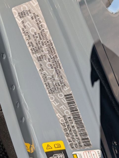 Well equipped with: Convenience Group (2-Door Passive Entry, Front Door Locks, Air Conditioning with Auto Temp Control, Air Filtering, Cluster 7.0 TFT Color Display, Emergency/Assistance Call, Heated Front Seats, Heated Steering Wheel, and Universal Garage Door Opener), Quick Order Package 22W Willys (4-Wheel Drive Swing Gate Decal, 7 and 4 Pin Wiring Harness, Advanced Brake Assist, Automatic Headlamps, Auxiliary Switches, Black Grille with Gloss Black Rings, Class II Receiver Hitch, Conventional Differential Front Axle, Corning Gorilla Glass, Dana M210 Wide HD Tube Front Axle, Dana M220 Wide Rear Axle, Daytime Running Lamps LED Accents, Deep Tint Sunscreen Windows, E-Locker Rear Axle, Enhanced Adaptive Cruise Control, Front LED Fog Lamps, Full Speed Forward Collision Warning Plus, Injection Molded Black Rear Bumper, LED Premium Reflector Headlamps, Mold in Color Bumper with Gloss Black, Molded in Color Rubicon Highline Flare, MOPAR All-Weather Floor Mats, Off-Road Plus Mode, Power Heated Mirrors, Premium Wrapped Steering Wheel, Security Alarm, Sun Visors with Illuminated Vanity Mirrors, Wheels: 17 x 7.5 Painted Black, Willy's Suspension, and Willys Hood Decal), Safety Group (Auto High Beam Headlamp Control, Blind Spot and Cross Path Detection, LED Taillamps, and ParkSense Rear Park Assist System), Steel Power Dome Hood Package (Power Dome Dual Vented Hood), 12.3 Touchscreen Display, 4-Wheel Disc Brakes, 4G LTE Wi-Fi Hot Spot, 8 Speakers, ABS brakes, Air Conditioning, Alpine Premium Audio System, AM/FM radio: SiriusXM with 360L, Apple CarPlay, Apple CarPlay/Android Auto, Aux Battery, Brake assist, Compass, Connectivity - US/Canada, Delay-off headlights, Driver door bin, Driver vanity mirror, Dual front impact airbags, Dual front side impact airbags, Electronic Stability Control, For More Info, Call 800-643-2112, Front anti-roll bar, Front Bucket Seats, Front Center Armrest w/Storage, Front fog lights, Front reading lights, Google Android Auto, Illuminated entry, Integrated Center Stack Radio, Integrated roll-over protection, Low tire pressure warning, Myflexcare Service Plan, Non-Lock Fuel Cap Without Discriminator, Normal Duty Suspension, Occupant sensing airbag, Outside temperature display, Overhead airbag, Panic alarm, ParkView Rear Back-Up Camera, Passenger door bin, Passenger vanity mirror, Power steering, Power Top Quarter Window Storage Bag, Power windows, Radio data system, Radio: Uconnect 5 with 12.3 Display, Rear anti-roll bar, Rear reading lights, Rear Window Defroster, Rear Window Wiper/Washer, Remote keyless entry, Removable Rear Quarter Windows, SiriusXM Radio Service, SiriusXM with 360L, Sky One-Touch Power Top, Speed control, Split folding rear seat, Steering wheel mounted audio controls, Stop-Start Dual Battery System, Tachometer, Telescoping steering wheel, Tilt steering wheel, Traction control, Trip computer, Variably intermittent wipers, and Wheels: 17 x 7.5 Black Steel Styled. Price includes: $1000 - 2026 National Retail Bonus Cash . Exp. 03/31/2026 $1000 - 2026 National Stellantis Loyalty Bonus Cash . Exp. 03/31/2026 $2500 - 2026 National Select Inventory Bonus Cash. Exp. 01/04/2027