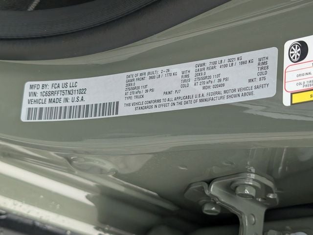 - Front Tire Size: P275/55TR20