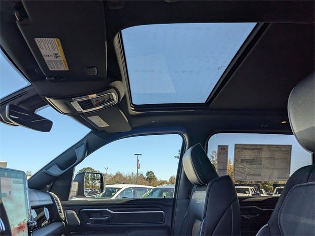 Well equipped with: Bed Utility Group (Exterior 115V AC Outlet and MOPAR 4 Adjustable Cargo Tie-Down Hooks), Laramie Level 2 Equipment Group (14.4 Touchscreen Display, 4G LTE Wi-Fi Hot Spot, Cluster 12 TFT Color Display, Connectivity - US/Canada, Front Passenger Interactive Display, GPS Navigation, Integrated Center Stack Radio, Power Tailgate, Rain Sensitive Windshield Wipers, SiriusXM Radio Service, and USB Host Flip), Quick Order Package 21H Laramie, Sport Appearance Package (Accent Color Premium Power Mirrors, Auto Power-Folding Mirrors, Auto-Dimming Exterior Driver Mirror, Black Interior Accents, Black Painted Exterior Mirrors Caps, Body Color Front Bumper, Bridgestone Brand Tires, Convex Wide-Angle Exterior Mirror Insert, Exterior Mirrors Courtesy Lamps, Grille Surround 3 Body Color Tex 2 Black, RAM Grille Badge - Chrome, and Sport Performance Hood), 10 Speakers, 3.55 Rear Axle Ratio, 4-Wheel Disc Brakes, ABS brakes, Active Noise Control System, Air Conditioning, Alloy wheels, AM/FM radio: SiriusXM with 360L, Apple CarPlay/Android Auto, Audio memory, Auto High-beam Headlights, Auto-dimming door mirrors, Auto-dimming Rear-View mirror, Automatic temperature control, Brake assist, Bumpers: chrome, Chrome Exterior Mirrors, Compass, Delay-off headlights, Dome Dual LED Reading Lamp, Driver door bin, Driver vanity mirror, Dual front impact airbags, Dual front side impact airbags, Dual-Pane Panoramic Sunroof, Electronic Stability Control, Front anti-roll bar, Front Bucket Seats, Front Center Armrest w/Storage, Front dual zone A/C, Front fog lights, Front License Plate Bracket, Front reading lights, Front wheel independent suspension, Fully automatic headlights, Garage door transmitter, Heated door mirrors, Heated front seats, Heated rear seats, Heated steering wheel, Illuminated entry, Leather steering wheel, Leather Trimmed Bucket Seats, LED Dome/Reading Lamp, Low tire pressure warning, Memory seat, MyFlexCare Service Plan, Navigation System, Occupant sensing airbag, Off-Road Information Pages, Outside temperature display, Overhead airbag, Overhead console, Panic alarm, ParkView Rear Back-Up Camera, Passenger door bin, Passenger vanity mirror, Power Deployable Running Boards, Power door mirrors, Power driver seat, Power passenger seat, Power steering, Power windows, Radio data system, Rear anti-roll bar, Rear reading lights, Rear seat center armrest, Rear step bumper, Remote keyless entry, Security system, Speed control, Split folding rear seat, Steering wheel mounted audio controls, Tachometer, Telescoping steering wheel, Tilt steering wheel, Traction control, Trailer Brake Control, Trip computer, Turn signal indicator mirrors, Variably intermittent wipers, Ventilated front seats, Voltmeter, and Wheels: 20 x 9 Premium Paint/Polish. Price includes: $3500 - 2026 National Retail Consumer Cash . Exp. 02/02/2026