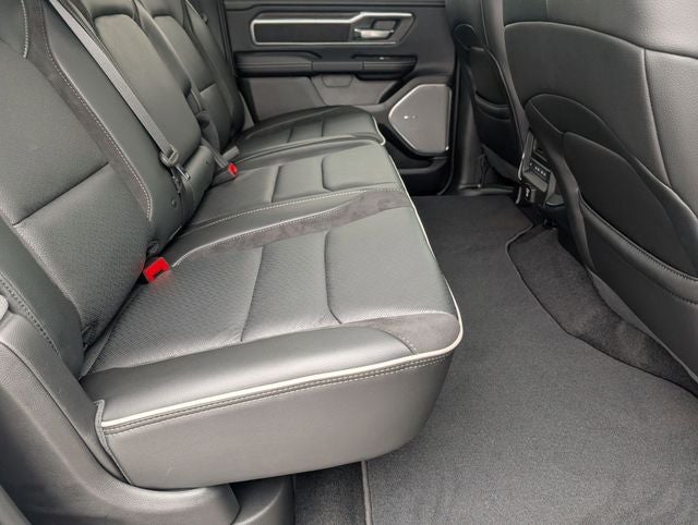 Well equipped with: Laramie Level 2 Equipment Group (14.4 Touchscreen Display, 4G LTE Wi-Fi Hot Spot, Cluster 12 TFT Color Display, Connected Travel and Traffic Services, Connectivity - US/Canada, Front Passenger Interactive Display, GPS Navigation, Harman/Kardon 19 Speaker Premium Sound, Integrated Center Stack Radio, Integrated Voice Command with Bluetooth®, Power Tailgate, Radio: Uconnect 5 Nav with 14.4 Display, Rain Sensitive Windshield Wipers, SiriusXM Radio Service, SiriusXM with 360L, and USB Host Flip), Night Edition (Accent Color Door Handles, Accent Color Premium Power Mirrors, Accent Color Tailgate Handle, Anti-Spin Differential Rear Axle, Auto Power-Folding Mirrors, Auto-Dimming Exterior Driver Mirror, Black Exterior Truck Badging, Black Headlamp Bezels, Black Interior Accents, Black Painted Exterior Mirrors Caps, Black Tail Lamp Bezels, Body Color Front Bumper, Body Color Rear Bumper with Step Pads, Convex Wide-Angle Exterior Mirror Insert, Dual Exhaust with Black Tips, Exterior Mirrors Approach Lamps, Exterior Mirrors Courtesy Lamps, Exterior Mirrors with Heating Element, Exterior Mirrors with Memory, Exterior Mirrors with Supplemental Signals, Grille Surround 3 Black Texture 2 Black, Pirelli Brand Tires, Proximity Approach/Departure Lamps, RAM Grille Badge - Black, Sport Performance Hood, and Wheels: 22 x 9 Forged Aluminum), Quick Order Package 27H Laramie, 10 Speakers, 4-Wheel Disc Brakes, ABS brakes, Active Noise Control System, Adjustable pedals, Air Conditioning, Alloy wheels, AM/FM radio: SiriusXM with 360L, Apple CarPlay/Android Auto, Audio memory, Auto High-beam Headlights, Auto-dimming door mirrors, Auto-dimming Rear-View mirror, Automatic temperature control, Brake assist, Bumpers: chrome, Chrome Exterior Mirrors, Compass, Delay-off headlights, Dome Dual LED Reading Lamp, Driver door bin, Driver vanity mirror, Dual front impact airbags, Dual front side impact airbags, Dual-Pane Panoramic Sunroof, Electronic Stability Control, Front anti-roll bar, Front Bucket Seats, Front Center Armrest w/Storage, Front dual zone A/C, Front fog lights, Front License Plate Bracket, Front reading lights, Front wheel independent suspension, Fully automatic headlights, Garage door transmitter, Heated door mirrors, Heated front seats, Heated rear seats, Heated steering wheel, Illuminated entry, Leather steering wheel, Leather Trimmed Bucket Seats, LED Dome/Reading Lamp, Low tire pressure warning, Memory seat, MyFlexCare Service Plan, Navigation System, Occupant sensing airbag, Off-Road Information Pages, Outside temperature display, Overhead airbag, Overhead console, Panic alarm, ParkView Rear Back-Up Camera, Passenger door bin, Passenger vanity mirror, Pedal memory, Power Deployable Running Boards, Power door mirrors, Power driver seat, Power passenger seat, Power steering, Power windows, Radio data system, Radio: Uconnect 5 Navigation with 12.0 Display, RAM Grille Badge - Chrome, Rear anti-roll bar, Rear reading lights, Rear seat center armrest, Rear step bumper, Remote keyless entry, Security system, Speed control, Split folding rear seat, Steering wheel mounted audio controls, Tachometer, Telescoping steering wheel, Tilt steering wheel, Traction control, Trailer Brake Control, Trip computer, Turn signal indicator mirrors, Variably intermittent wipers, Ventilated front seats, Voltmeter, and Wheels: 20 x 9 Premium Paint/Polish. Price includes: $1500 - 2026 Southeast BC Retail Bonus Cash. Exp. 04/30/2026 $3500 - 2026 National Retail Bonus Cash . Exp. 04/30/2026