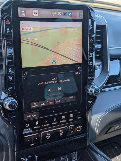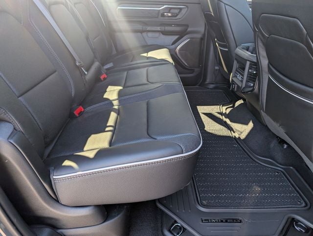 Well equipped with: Bed Utility Group (Exterior 115V AC Outlet and MOPAR 4 Adjustable Cargo Tie-Down Hooks), Limited Level An Equipment Group (12-Way/1-Way Trailer Connector, 14.4 Touchscreen Display, 240 Amp Alternator, 4G LTE Wi-Fi Hot Spot, Apple CarPlay, Connected Travel and Traffic Services, Connectivity - US/Canada, Disassociated Touchscreen Display, Drowsy Driver Detection, Evasive Steer Assist, Global Telematics Box Module, Google Android Auto, GPS Antenna Input, GPS Navigation, Hands-Free Active Driving Assist System, HD Radio, Heads-Up Display, Integrated Center Stack Radio, Integrated Voice Command with Bluetooth®, Intersection Collision Assist System, LED CHMSL Lamp, Radio: Uconnect 5 Nav with 14.4 Display, RamBox Cargo Management System, SiriusXM Radio Service, SiriusXM with 360L, Smartphone as a Key Capable, Surround View Camera System, Traffic Sign Recognition, Tri-Fold Tonneau Cover, and USB Host Flip), Night Edition (Accent Color Door Handles, Accent Color Premium Power Mirrors, Accent Color Tailgate Handle, Auto Power-Folding Mirrors, Auto-Dimming Exterior Driver Mirror, Black Day Light Opening Moldings, Black Exterior Truck Badging, Black Grille Surround Texture 7 Black, Black Headlamp Bezels, Black Painted Exterior Mirrors Caps, Black Tail Lamp Bezels, Body Color Front Bumper, Body Color Rear Bumper with Step Pads, Convex Wide-Angle Exterior Mirror Insert, Dual Exhaust with Black Tips, Exterior Mirrors Courtesy Lamps, Exterior Mirrors with Heating Element, Exterior Mirrors with Memory, Exterior Mirrors with Supplemental Signals, Pirelli Brand Tires, RAM Grille Badge - Black, Sport Performance Hood, and Wheels: 22 x 9 Premium Black Aluminum), Quick Order Package 22M Limited, 19 Speakers, 3.92 Rear Axle Ratio, 4-Wheel Disc Brakes, ABS brakes, Active Noise Control System, Adjustable pedals, Air Conditioning, Alloy wheels, AM/FM radio, Apple CarPlay/Android Auto, Audio memory, Auto High-beam Headlights, Auto-dimming door mirrors, Auto-dimming Rear-View mirror, Auto-leveling suspension, Automatic temperature control, Bodyside moldings, Brake assist, Bumpers: chrome, Chrome Exterior Mirrors, Compass, Delay-off headlights, Dome Dual LED Reading Lamp, Driver door bin, Driver vanity mirror, Dual front impact airbags, Dual front side impact airbags, Dual-Pane Panoramic Sunroof, Electronic Stability Control, Exterior Parking Camera Rear, Front anti-roll bar, Front Bucket Seats, Front Center Armrest w/Storage, Front dual zone A/C, Front fog lights, Front License Plate Bracket, Front reading lights, Front wheel independent suspension, Fully automatic headlights, Garage door transmitter, Genuine wood console insert, Genuine wood dashboard insert, Genuine wood door panel insert, Heated door mirrors, Heated front seats, Heated rear seats, Heated steering wheel, Illuminated entry, Leather steering wheel, LED Dome/Reading Lamp, Low tire pressure warning, Memory seat, Multi-Function Tailgate, MyFlexCare Service Plan, Navigation System, Occupant sensing airbag, Outside temperature display, Overhead airbag, Overhead console, Panic alarm, Passenger door bin, Passenger vanity mirror, Pedal memory, Power door mirrors, Power driver seat, Power passenger seat, Power steering, Power windows, Premium Quilted Leather Bucket Seats, Radio data system, Radio: Uconnect 5 Navigation with 12.0 Display, Rain sensing wipers, RAM's Head Badge, Rear anti-roll bar, Rear reading lights, Rear seat center armrest, Rear step bumper, Rear window defroster, Remote keyless entry, Remote Tailgate Release, Security system, Speed control, S Price includes: $3500 - 2026 National Retail Bonus Cash . Exp