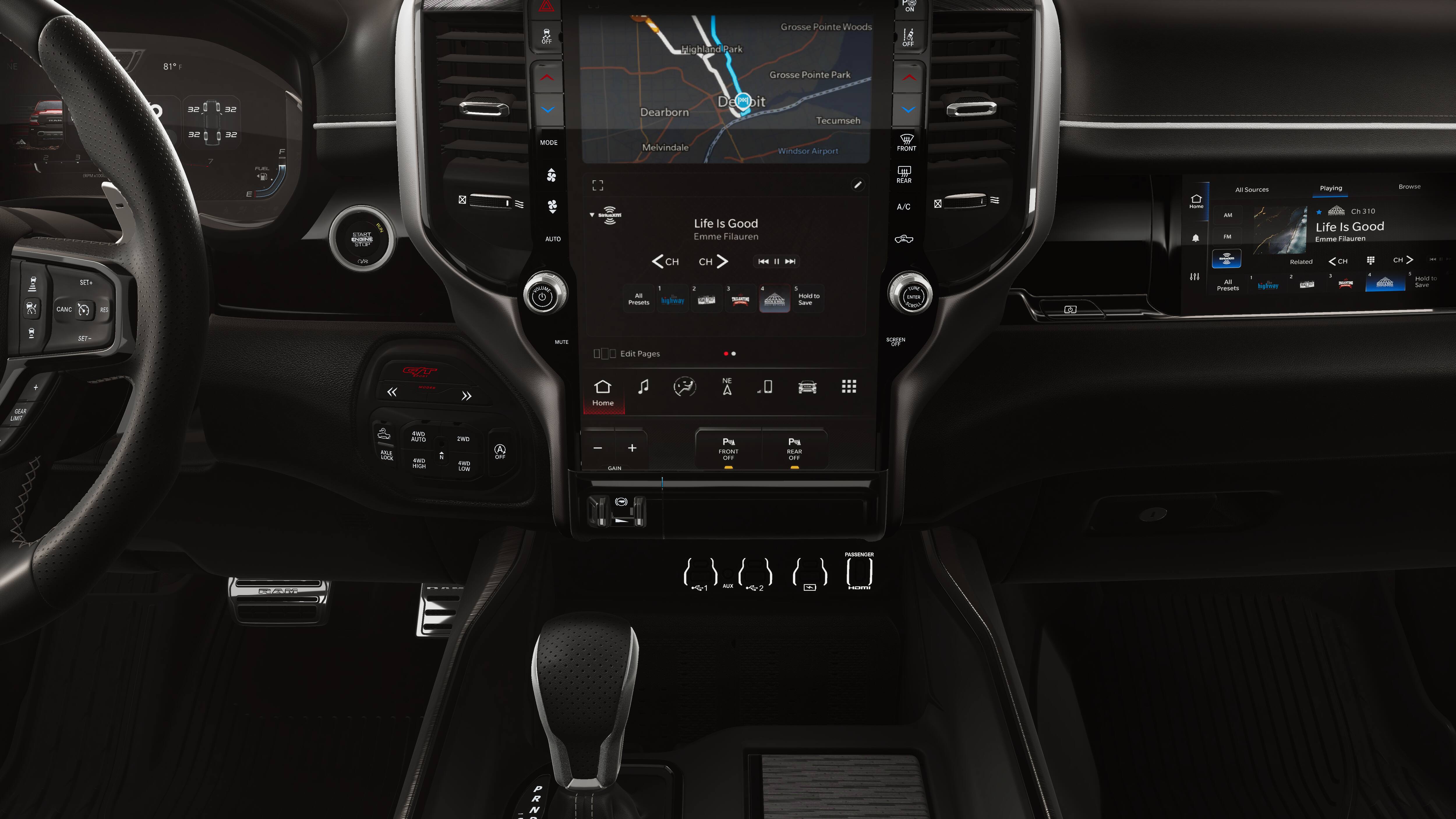 - 4-Wheel Disc Brakes w/4-Wheel ABS, Front Vented Discs, Brake Assist, Hill Descent Control, Hill Hold Control and Electric Parking Brake
