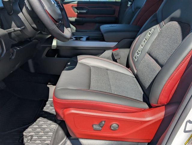 Well equipped with: Bed Utility Group (Exterior 115V AC Outlet, MOPAR 4 Adjustable Cargo Tie-Down Hooks, and MOPAR Spray in Bedliner), Quick Order Package 21W Rebel, Rebel Level 1 Equipment Group (Auto Power-Folding Mirrors, Auto-Dimming Exterior Driver Mirror, Black Exterior Mirrors, Black Premium Power Mirrors, Convex Wide-Angle Exterior Mirror Insert, Exterior Mirrors Courtesy Lamps, Exterior Mirrors with Heating Element, Exterior Mirrors with Supplemental Signals, Power Adjustable Pedals, Rear Window Defroster, Remote Tailgate Release, and Wireless Charging Pad), 10 Speakers, 3.92 Rear Axle Ratio, 4 Way Front Headrests, 4-Wheel Disc Brakes, 4G LTE Wi-Fi Hot Spot, ABS brakes, Active Noise Control System, Air Conditioning, Alloy wheels, AM/FM radio: SiriusXM with 360L, Apple CarPlay, Apple CarPlay/Android Auto, Auto High-beam Headlights, Auto-dimming Rear-View mirror, Automatic temperature control, Brake assist, Bucket Seats, Cloth/Vinyl Bucket Seats, Compass, Connected Travel and Traffic Services, Connectivity - US/Canada, Delay-off headlights, Disassociated Touchscreen Display, Driver door bin, Driver vanity mirror, Dual front impact airbags, Dual front side impact airbags, Electronic Stability Control, Front anti-roll bar, Front Bucket Seats, Front Center Armrest w/Storage, Front dual zone A/C, Front fog lights, Front License Plate Bracket, Front reading lights, Front Seat Back Map Pockets, Front wheel independent suspension, Full Length Upgraded Floor Console, Fully automatic headlights, Garage door transmitter, Global Telematics Box Module, Google Android Auto, GPS Antenna Input, GPS Navigation, HD Radio, Heated door mirrors, Heated Front Seats, Heated front seats, Heated Steering Wheel, Heated steering wheel, Illuminated entry, Integrated Center Stack Radio, Integrated Voice Command with Bluetooth®, Leather steering wheel, Low tire pressure warning, Manual Folding Exterior Mirrors, MyFlexCare Service Plan, Navigation System, Occupant sensing airbag, Off-Road Information Pages, Outside temperature display, Overhead airbag, Overhead console, Panic alarm, ParkView Rear Back-Up Camera, Passenger door bin, Passenger vanity mirror, Power 2-Way Driver Lumbar Adjust, Power Adjust 8-Way Driver Seat, Power door mirrors, Power driver seat, Power steering, Power windows, Radio data system, Radio: Uconnect 5 Navigation with 12.0 Display, Rear 60/40 Folding Seat, Rear anti-roll bar, Rear seat center armrest, Rear step bumper, Remote keyless entry, SiriusXM Radio Service, SiriusXM with 360L, Speed control, Split folding rear seat, Steering wheel mounted audio controls, Tachometer, Telescoping steering wheel, Tilt steering wheel, Traction control, Trip computer, USB Host Flip, Variably intermittent wipers, Voltmeter, and Wheels: 18 x 8.0 Painted Mid-Gloss Black. Price includes: $3500 - 2026 National Retail Bonus Cash . Exp. 04/30/2026