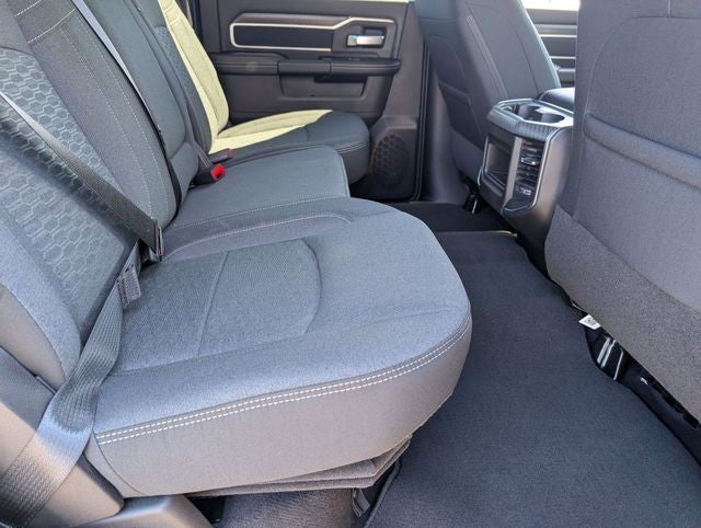 Well equipped with: Big Horn Level 1 Plus Equipment Group (12 Touchscreen Display, 2 Way Rear Headrest Seat, 2nd Row in Floor Storage Bins, 4 Way Front Headrests, 40/20/40 Split Bench Seat, 4G LTE Wi-Fi Hot Spot, 9 Alpine Speakers with Subwoofer, Air Conditioning ATC with Dual Zone Control, Alexa Built-in, Anti-Spin Differential Rear Axle, Apple CarPlay, Auto Power-Folding Mirrors, Auto-Dimming Rear-View Mirror, Black Exterior Mirrors, Connected Travel and Traffic Services, Connectivity - US/Canada, Disassociated Touchscreen Display, Dual Glove Boxes, Emergency Vehicle Alert System (EVAS), Exterior Mirrors Courtesy Lamps, Exterior Mirrors with Heating Element, Exterior Mirrors with Supplemental Signals, Foam Bottle Insert (door Trim Panel), Folding Flat Load Floor Storage, Footwell Courtesy Lamp, For Details, Visit DriveUconnect.com, For More Info, Call 800-643-2112, Forward and Reverse Utility Lights, Front Armrest with Cupholders, Front Center Seat Cushion Storage, Front Seat Back Map Pockets, Global Telematics Box Module, Glove Box Lamp, Google Android Auto, GPS Antenna Input, GPS Navigation, HD Radio, Integrated Voice Command with Bluetooth®, LED Bed Lighting, Locking Lower Glove Box, Luxury Steering Wheel, Manual Adjust 4-Way Front Passenger Seat, Mirror Running Lights, MOPAR Deployable Bed Step, MOPAR Spray in Bedliner, Off-Road Info Pages, Power 2-Way Driver Lumbar Adjust, Power Adjust 8-Way Driver Seat, Power Adjust Mirrors, Power Heated Folding Telescopic Mirrors, Power Telescoping Mirrors, Power-Adjustable Convex Aux Mirrors, Premium Cloth 40/20/40 Bench Seat, Radio: Uconnect 5 Navigation with 12.0 Display, Rear 60/40 Folding Seat, Rear Dome with on/Off Switch Lamp, Remote Start System, Remote USB Port - Charge Only, Selectable Tire Fill Alert, SiriusXM Radio Service, SiriusXM with 360L, Steering Wheel Mounted Audio Controls, Storage Tray, and Trailer Tow Pages), Night Edition (Black Exterior Truck Badging, Black Interior Accents, Black Wheel Center Hub, Body Color Grille-Surround, Gloss Black Nostrils/Mic Black Grille, Painted Front Bumper, Painted Rear Bumper, and Wheels: 20 x 8.0 Black Painted Aluminum), Quick Order Package 24Z Big Horn, 4-Wheel Disc Brakes, 5th Wheel/Gooseneck Towing Prep Group, 6 Speakers, ABS brakes, Air Conditioning, Alloy wheels, AM/FM radio: SiriusXM, Apple CarPlay/Android Auto, Brake assist, Bumpers: chrome, Center Hub, Clearance Lamps, Cloth 40/20/40 Bench Seat, Compass, Dash Pass Thru Wire Circuits, Delay-off headlights, Driver door bin, Dual front impact airbags, Dual front side impact airbags, Electronic Stability Control, Front anti-roll bar, Front Center Armrest w/Storage, Front fog lights, Front License Plate Bracket, Front reading lights, Fully automatic headlights, Heated door mirrors, Illuminated entry, Instrument Panel Mounted Auxiliary Switches, Low tire pressure warning, Manual Adjust 4-Way Driver Seat, MyFlexCare Service Diesel, Occupant sensing airbag, Outside temperature display, Overhead airbag, Overhead console, Panic alarm, ParkView Rear Back-Up Camera, Passenger door bin, Passenger vanity mirror, Power door mirrors, Power steering, Power windows, Radio data system, Radio: Uconnect 5 with 8.4 Display, Rear anti-roll bar, Rear Folding Seat, Rear seat center armrest, Rear step bumper, Rear window defroster, Remote keyless entry, Security system, Speed control, Tachometer, Tilt steering wheel, Traction control, Trip computer, Turn signal indicator mirrors, Variably intermittent wipers, Voltmeter, and Wheels: 18 x 8.0 Polished AluminuM. Price includes: $1000 - 2026 National Bonus Cash . Exp. 04/30/2026