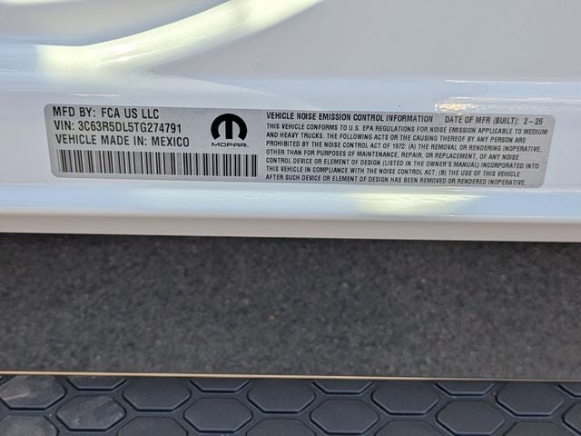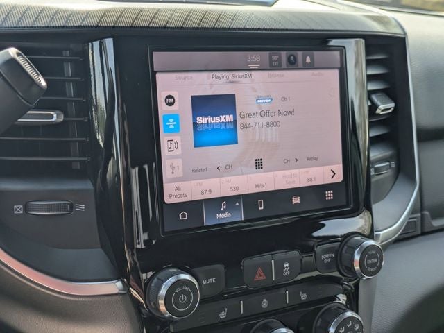 Well equipped with: Big Horn Level 2 Equipment Group (115-Volt Auxiliary Front Power Outlet, 115V Auxiliary Rear Power Outlet, 2 Way Rear Headrest Seat, 2nd Row in Floor Storage Bins, 4 Way Front Headrests, 400W Inverter, 9 Alpine Speakers with Subwoofer, Anti-Spin Differential Rear Axle, Auto Power-Folding Mirrors, Auto-Dimming Rear-View Mirror, Black Exterior Mirrors, Blind Spot and Cross Path Detection, Bucket Seats, Cluster 7.0 TFT Color Display, Dampened Tailgate, Dual Glove Boxes, Dual Wireless Charging Pad, Exterior 115V AC Outlet, Exterior Mirrors Courtesy Lamps, Exterior Mirrors with Heating Element, Exterior Mirrors with Supplemental Signals, Foam Bottle Insert (door Trim Panel), Folding Flat Load Floor Storage, Footwell Courtesy Lamp, Forward and Reverse Utility Lights, Front Seat Back Map Pockets, Full Length Upgraded Floor Console, Glove Box Lamp, Heated Front Seats, Heated Steering Wheel, LED Tail Lamps, Locking Lower Glove Box, Luxury Steering Wheel, Manual Adjust 4-Way Front Passenger Seat, Media Hub with 2 Charge Only USBs, Mirror Running Lights, Power 2-Way Driver Lumbar Adjust, Power Adjust 8-Way Driver Seat, Power Adjust Mirrors, Power Adjustable Pedals, Power Heated Folding Telescopic Mirrors, Power Telescoping Mirrors, Power-Adjustable Convex Aux Mirrors, Premium Cloth Bucket Seats, Rear 60/40 Folding Seat, Rear Dome with on/Off Switch Lamp, Rear Power Sliding Window, Red Tail Lamp Bezels, Remote Start System, Steering Wheel Mounted Audio Controls, Sun Visors with Illuminated Vanity Mirrors, and Universal Garage Door Opener), Quick Order Package 24Z Big Horn, 4-Wheel Disc Brakes, 40/20/40 Split Bench Seat, 4G LTE Wi-Fi Hot Spot, 5th Wheel/Gooseneck Towing Prep Group, 6 Speakers, ABS brakes, Air Conditioning, Alloy wheels, AM/FM radio: SiriusXM, Apple CarPlay, Apple CarPlay/Android Auto, Brake assist, Bumpers: chrome, Center Hub, Clearance Lamps, Cloth 40/20/40 Bench Seat, Compass, Connectivity - US/Canada, Dash Pass Thru Wire Circuits, Delay-off headlights, Driver door bin, Dual front impact airbags, Dual front side impact airbags, Electronic Stability Control, For Details, Visit DriveUconnect.com, For More Info, Call 800-643-2112, Front anti-roll bar, Front Armrest with Cupholders, Front Center Armrest w/Storage, Front fog lights, Front License Plate Bracket, Front reading lights, Fully automatic headlights, Global Telematics Box Module, Google Android Auto, GPS Antenna Input, Heated door mirrors, Illuminated entry, Instrument Panel Mounted Auxiliary Switches, Integrated Voice Command with Bluetooth®, Low tire pressure warning, Manual Adjust 4-Way Driver Seat, MyFlexCare Service Diesel, Occupant sensing airbag, Outside temperature display, Overhead airbag, Overhead console, Panic alarm, ParkView Rear Back-Up Camera, Passenger door bin, Passenger vanity mirror, Power door mirrors, Power steering, Power windows, Radio data system, Radio: Uconnect 5 with 8.4 Display, Rear anti-roll bar, Rear Folding Seat, Rear seat center armrest, Rear step bumper, Rear window defroster, Remote keyless entry, Remote USB Port - Charge Only, Security system, Selectable Tire Fill Alert, SiriusXM Radio Service, Speed control, Storage Tray, Tachometer, Tilt steering wheel, Traction control, Trip computer, Turn signal indicator mirrors, Variably intermittent wipers, Voltmeter, and Wheels: 18 x 8.0 Polished AluminuM. Price includes: $1000 - 2026 National Bonus Cash . Exp. 04/30/2026