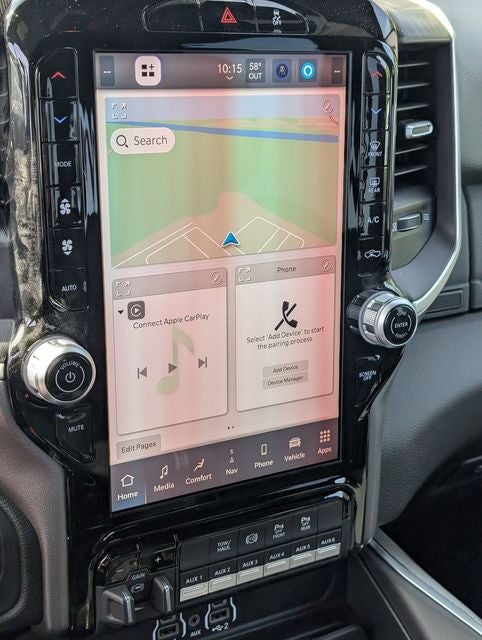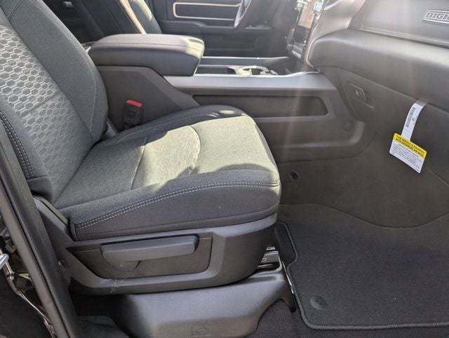 Well equipped with: Big Horn Level 1 Plus Equipment Group (12 Touchscreen Display, 2 Way Rear Headrest Seat, 2nd Row in Floor Storage Bins, 4 Way Front Headrests, 40/20/40 Split Bench Seat, 4G LTE Wi-Fi Hot Spot, 9 Alpine Speakers with Subwoofer, Air Conditioning ATC with Dual Zone Control, Alexa Built-in, Anti-Spin Differential Rear Axle, Apple CarPlay, Auto Power-Folding Mirrors, Auto-Dimming Rear-View Mirror, Black Exterior Mirrors, Connected Travel and Traffic Services, Connectivity - US/Canada, Disassociated Touchscreen Display, Dual Glove Boxes, Emergency Vehicle Alert System (EVAS), Exterior Mirrors Courtesy Lamps, Exterior Mirrors with Heating Element, Exterior Mirrors with Supplemental Signals, Foam Bottle Insert (door Trim Panel), Folding Flat Load Floor Storage, Footwell Courtesy Lamp, For Details, Visit DriveUconnect.com, For More Info, Call 800-643-2112, Forward and Reverse Utility Lights, Front Armrest with Cupholders, Front Center Seat Cushion Storage, Front Seat Back Map Pockets, Global Telematics Box Module, Glove Box Lamp, Google Android Auto, GPS Antenna Input, GPS Navigation, HD Radio, Integrated Voice Command with Bluetooth®, LED Bed Lighting, Locking Lower Glove Box, Luxury Steering Wheel, Manual Adjust 4-Way Front Passenger Seat, Mirror Running Lights, MOPAR Deployable Bed Step, MOPAR Spray in Bedliner, Off-Road Info Pages, Power 2-Way Driver Lumbar Adjust, Power Adjust 8-Way Driver Seat, Power Adjust Mirrors, Power Heated Folding Telescopic Mirrors, Power Telescoping Mirrors, Power-Adjustable Convex Aux Mirrors, Premium Cloth 40/20/40 Bench Seat, Radio: Uconnect 5 Navigation with 12.0 Display, Rear 60/40 Folding Seat, Rear Dome with on/Off Switch Lamp, Remote Start System, Remote USB Port - Charge Only, Selectable Tire Fill Alert, SiriusXM Radio Service, SiriusXM with 360L, Steering Wheel Mounted Audio Controls, Storage Tray, and Trailer Tow Pages), Night Edition (Black Exterior Truck Badging, Black Interior Accents, Black Wheel Center Hub, Body Color Grille-Surround, Gloss Black Nostrils/Mic Black Grille, Painted Front Bumper, Painted Rear Bumper, and Wheels: 20 x 8.0 Black Painted Aluminum), Quick Order Package 24Z Big Horn, 4-Wheel Disc Brakes, 5th Wheel/Gooseneck Towing Prep Group, 6 Speakers, ABS brakes, Air Conditioning, Alloy wheels, AM/FM radio: SiriusXM, Apple CarPlay/Android Auto, Brake assist, Bumpers: chrome, Center Hub, Clearance Lamps, Cloth 40/20/40 Bench Seat, Compass, Dash Pass Thru Wire Circuits, Delay-off headlights, Driver door bin, Dual front impact airbags, Dual front side impact airbags, Electronic Stability Control, Front anti-roll bar, Front Center Armrest w/Storage, Front fog lights, Front License Plate Bracket, Front reading lights, Fully automatic headlights, Heated door mirrors, Illuminated entry, Instrument Panel Mounted Auxiliary Switches, Low tire pressure warning, Manual Adjust 4-Way Driver Seat, MyFlexCare Service Diesel, Occupant sensing airbag, Outside temperature display, Overhead airbag, Overhead console, Panic alarm, ParkView Rear Back-Up Camera, Passenger door bin, Passenger vanity mirror, Power door mirrors, Power steering, Power windows, Radio data system, Radio: Uconnect 5 with 8.4 Display, Rear anti-roll bar, Rear Folding Seat, Rear seat center armrest, Rear step bumper, Rear window defroster, Remote keyless entry, Security system, Speed control, Tachometer, Tilt steering wheel, Traction control, Trip computer, Turn signal indicator mirrors, Variably intermittent wipers, Voltmeter, and Wheels: 18 x 8.0 Polished AluminuM. Price includes: $1000 - 2026 National Bonus Cash . Exp. 04/30/2026