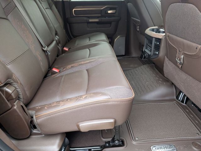 Well equipped with: Longhorn Level 1 Equipment Group (Active Lane Management System, Adaptive Steering System, Anti-Spin Differential Rear Axle, Center Stop Lamp with Cargo View Camera, Digital Rearview Mirror, Drowsy Driver Detection, LED Bed Lighting, MOPAR Spray in Bedliner, MOPAR Trailer Camera Wiring with No Camera, Power Deployable Running Boards, Surround View Camera System, Traffic Sign Recognition, Trailer Reverse Guidance, and Trailer Tire Pressure Monitoring System), Quick Order Package 24K Longhorn (I/P Aluminum Litho Bezels with Real Wood #1, Longhorn Badge, Longhorn Instrument Cluster Theme 3, Luxury Front and Rear Floor Mats, Premium Filigree Leather Seats, and Warm Chrome Key Fob), Tow-Mode Digital Rearview Mirror Package (Tow-Mode Camera (Wired)), 17 Speakers, 3.42 Axle Ratio, 4-Wheel Disc Brakes, ABS brakes, Adjustable pedals, Air Conditioning, Alloy wheels, AM/FM radio: SiriusXM with 360L, Apple CarPlay/Android Auto, Audio memory, Auto High-beam Headlights, Auto Level Rear Air Suspension, Auto-dimming door mirrors, Auto-dimming Rear-View mirror, Automatic temperature control, Black Wheel Center Hub, Bodyside moldings, Brake assist, Bumpers: body-color, Clearance Lamps, Compass, Dash Pass Thru Wire Circuits, Delay-off headlights, Driver door bin, Driver vanity mirror, Dual front impact airbags, Dual front side impact airbags, Electronic Stability Control, Front anti-roll bar, Front Bucket Seats, Front Center Armrest w/Storage, Front dual zone A/C, Front fog lights, Front License Plate Bracket, Front reading lights, Fully automatic headlights, Garage door transmitter, Genuine wood console insert, Genuine wood dashboard insert, Genuine wood door panel insert, harman/kardon® Speakers, Heated door mirrors, Heated front seats, Heated rear seats, Heated steering wheel, Illuminated entry, Instrument Panel Mounted Auxiliary Switches, Leather steering wheel, Low tire pressure warning, Memory seat, MyFlexCare Service Diesel, Navigation System, Occupant sensing airbag, Outside temperature display, Overhead airbag, Overhead console, Panic alarm, ParkView Rear Back-Up Camera, Passenger door bin, Passenger vanity mirror, Pedal memory, Power door mirrors, Power driver seat, Power passenger seat, Power steering, Power Sunroof, Power windows, Radio data system, Radio: Uconnect 5 Nav with 14.4 Display, Rain sensing wipers, Rear anti-roll bar, Rear reading lights, Rear seat center armrest, Rear step bumper, Rear window defroster, Remote keyless entry, Security system, Speed control, Split folding rear seat, Steering wheel mounted audio controls, Tachometer, Tilt steering wheel, Traction control, Tri-Fold Tonneau Cover, Trip computer, Turn signal indicator mirrors, Ultra Premium Leather Seats, Variably intermittent wipers, Vendor Painted Cargo Box, Vendor Painted Cargo Box Tracking, Ventilated front seats, Voltmeter, and Wheels: 20 x 8 Diamond Cut Aluminum. Price includes: $1000 - 2026 National Bonus Cash . Exp. 03/31/2026