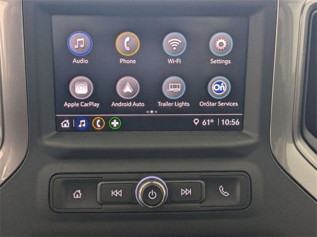 - Audio system, Chevrolet Infotainment 3 system 7" diagonal HD color touchscreen, AM/FM stereo, Bluetooth® audio streaming for 2 active devices, voice command pass-through to phone, Wireless Apple CarPlay and Wireless Android Auto compatibility