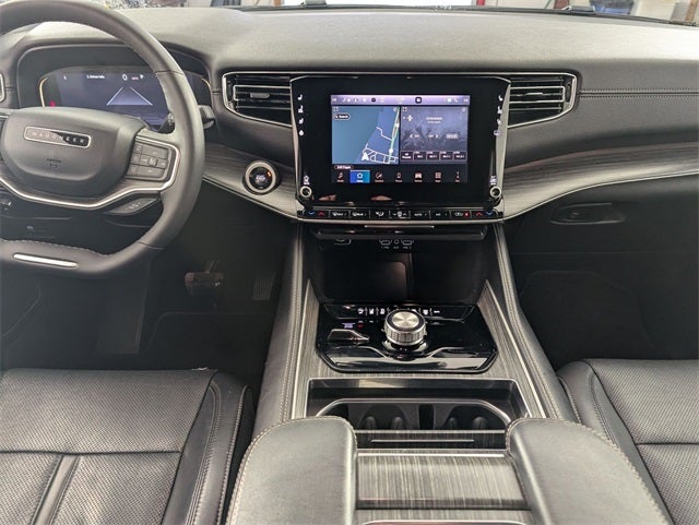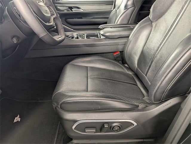 Well equipped with: Quick Order Package 25J, FCA US LLC Certified Pre-Owned Certified, Navigation System, 10 Speakers, 3.55 Rear Axle Ratio, 3rd row seats: bench, 4-Wheel Disc Brakes, 8-Passenger Seating, ABS brakes, Adjustable pedals, Air Conditioning, Alloy wheels, AM/FM radio: SiriusXM with 360L, Anti-whiplash front head restraints, Apple CarPlay/Android Auto, Audio memory, Auto-dimming door mirrors, Auto-dimming Rear-View mirror, Auto-leveling suspension, Automatic temperature control, Brake assist, Bumpers: body-color, Compass, Delay-off headlights, Driver door bin, Driver vanity mirror, Driver's Seat Mounted Armrest, Dual front impact airbags, Dual front side impact airbags, Electronic Stability Control, Emergency communication system: Wagoneer Connect, Exterior Parking Camera Rear, Four wheel independent suspension, Front anti-roll bar, Front Bucket Seats, Front Center Armrest w/Storage, Front dual zone A/C, Front fog lights, Front reading lights, Full Length Floor Console, Fully automatic headlights, Garage door transmitter, Genuine wood console insert, Genuine wood dashboard insert, Genuine wood door panel insert, Heated door mirrors, Heated front seats, Heated steering wheel, Illuminated entry, Knee airbag, Leather Trimmed Bucket Seats, Low tire pressure warning, Memory seat, Normal Duty Suspension, Occupant sensing airbag, Outside temperature display, Overhead airbag, Overhead console, Panic alarm, Passenger door bin, Passenger seat mounted armrest, Passenger vanity mirror, Pedal memory, Power adjustable front head restraints, Power door mirrors, Power driver seat, Power Liftgate, Power passenger seat, Power steering, Power windows, Radio data system, Radio: Uconnect 5 Nav w/10.1 Display, Rain sensing wipers, Rear air conditioning, Rear anti-roll bar, Rear reading lights, Rear seat center armrest, Rear window defroster, Rear window wiper, Reclining 3rd row seat, Remote keyless entry, Security system, Speed control, Speed-sensing steering, Speed-Sensitive Wipers, Split folding rear seat, Steering wheel memory, Steering wheel mounted audio controls, Tachometer, Telescoping steering wheel, Tilt steering wheel, Traction control, Trip computer, Turn signal indicator mirrors, Variably intermittent wipers, Ventilated front seats, Voltmeter, and Wheels: 20 x 9.0 Premium 2 Aluminum. ***FACTORY CHRYSLER CERTIFIED***, ONE OWNER, LIFETIME ENGINE GUARANTEE, BALANCE OF FACTORY WARRANTY, 4WD, FAST AND EASY FINANCING, THE NEW PRICE OUTLET, FCA US LLC Certified Pre-Owned Certified, Navigation System, Quick Order Package 25J, 10 Speakers, 3.55 Rear Axle Ratio, 3rd row seats: bench, 4-Wheel Disc Brakes, 8-Passenger Seating, ABS brakes, Adjustable pedals, Air Conditioning, Alloy wheels, AM/FM radio: SiriusXM with 360L, Anti-whiplash front head restraints, Apple CarPlay/Android Auto, Audio memory, Auto-dimming door mirrors, Auto-dimming Rear-View mirror, Auto-leveling suspension, Automatic temperature control, Brake assist, Bumpers: body-color, Compass, Delay-off headlights, Driver door bin, Driver vanity mirror, Driver's Seat Mounted Armrest, Dual front impact airbags, Dual front side impact airbags, Electronic Stability Control, Emergency communication system: Wagoneer Connect, Exterior Parking Camera Rear, Four wheel independent suspension, Front anti-roll bar, Front Bucket Seats, Front Center Armrest w/Storage, Front dual zone A/C, Front fog lights, Front reading lights, Full Length Floor Console, Fully automatic headlights, Garage door transmitter, Genuine wood console insert, Genuine wood dashboard insert, Genuine wood door panel insert, Heated door mirrors, Heated front seats, Heated steering wheel, Illuminated entry, Knee airbag, Leather Trimmed Bucket Seats, Low tire pressure warning, Memory seat, Normal Duty Suspension, Occupant sensing airbag, Outside temperature display, Overhead airbag, Overhead console, Panic alarm, Passe
